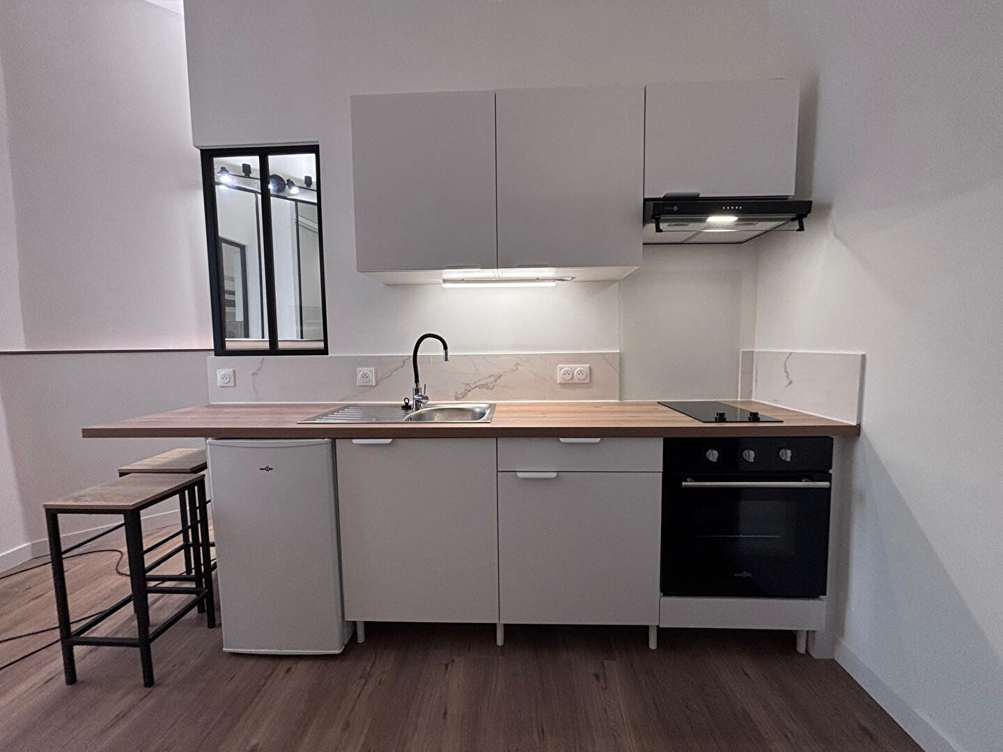 Studio atypique meublé entièrement rénové en 2025, équipé et climatisé, situé en RDC d'une maison en copropriété.