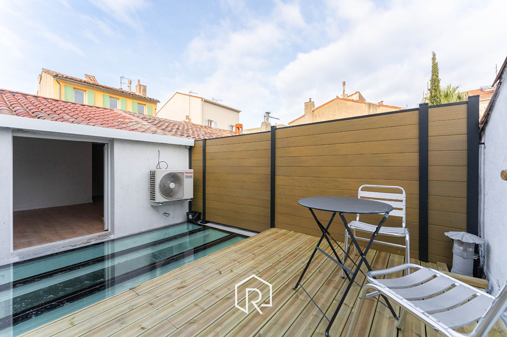 Idéalement située au coeur du village très prisé de Saint-Barnabé, cette maison de ville bénéficie d'un emplacement rare, à seulement 2 minutes à pied des commerces et du métro et propose une possibilité de stationnement. Entièrement rénovée, cette maison a été repensée en véritable cocon : Le rez-de-chaussée accueille le salon ainsi qu'un espace dédié à la cuisine que vous aménagerez à votre image. Cette pièce de vie est sublimée par un plafond de verre en tri feuilleté, lui apportant élégance et clarté. L'accès à l'étage se fait par un escalier en réalisé sur mesure desservant l'espace nuit qui reçoit deux chambres, dont une ouverte sur une terrasse intimiste de 15 m². Cet extérieur privilégié offre une vue sur le clocher de Saint-Barnabé, créant un cadre paisible et unique. Cette maison rare sur Saint-Barnabé allie charme, rénovation de qualité et emplacement recherché, idéale pour celles et ceux qui souhaitent profiter pleinement d'une vie de village.